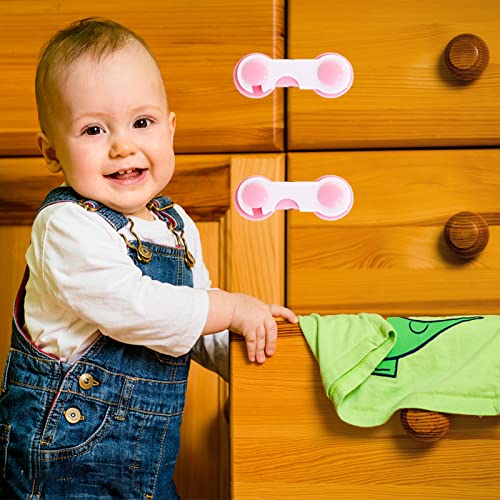 10 Pcs Pink Baby Proof Fridge Lock, Anti-Pinch Hand Freezer Door Lock, 3M Adhesive Pads No Drilling Baby Security Strap Locks for Cupboards Drawers Fridg Wardrobe Bathroom