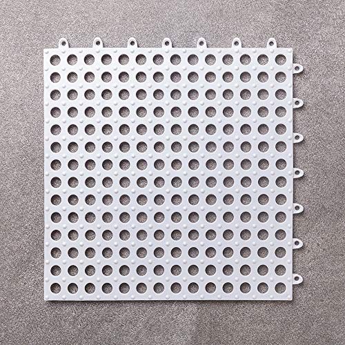 12PCS Interlocking Smooth PVC Flooring Tiles, No-Slip Pool Bathe Rest room Kitchen Mat with Drain Gap 11.75” x 11.75” Decking Tiles Outside and Indoor
