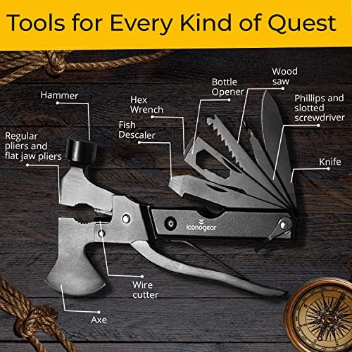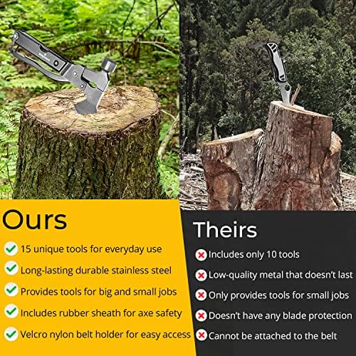 15 in 1 Multitool – Hammer, Survival Knife, Hatchet Axe, Bottle Opener, Pliers for Tenting, Emergency Automotive Equipment – Cool Multi Instrument Devices for Males Dad Husband Boyfriend Are Fathers Day Distinctive Items