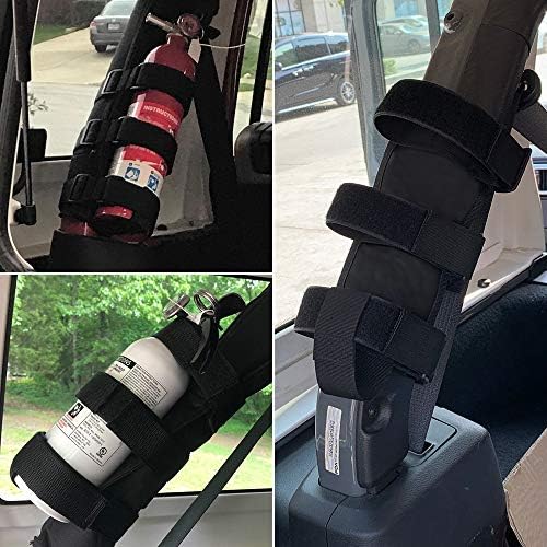 1PC Black Roll Bar 3 lb Fireplace Extinguisher Holder Mount Strap Appropriate with Jeep Wrangler Limitless CJ YJ LJ TJ JK JKU JL JLU Adjustable Extinguisher Mounting Bracket Strap for Jeep Gladiator JT