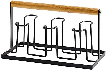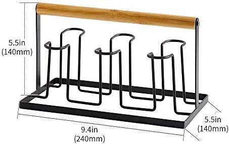 2 Packs Mug Organizer Kitchen Cup Drying Rack with Wooden Deal with,Cup Drying Rack Stand Espresso Cup Hanger, Steel Drainer Holder Rack Mugs Cups Organizer – Black – 9.4×5.5In
