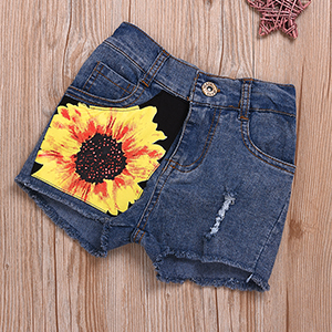 2pcs/Set Toddler Youngsters Child Woman Sleeveless Floral T-Shirt Prime Sunflower Denim Denims Shorts Outfits 1-8T