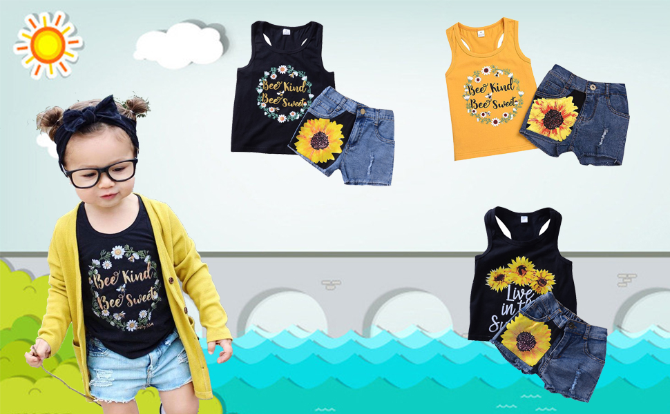 Toddler Woman Summer season Garments Set, Sleeveless Vest Tops with Sunflower Denims Shorts Outfits