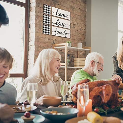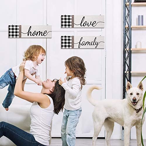 3 Items Residence Love Household Print Wooden Signal Wall Decor Rustic Farmhouse Buffalo Plaid Hanging Wood Quotes Indicators Black White Test Wooden Signal Decor for Residence Bed room Residing Room Workplace, 15.7 x 4.6 Inch