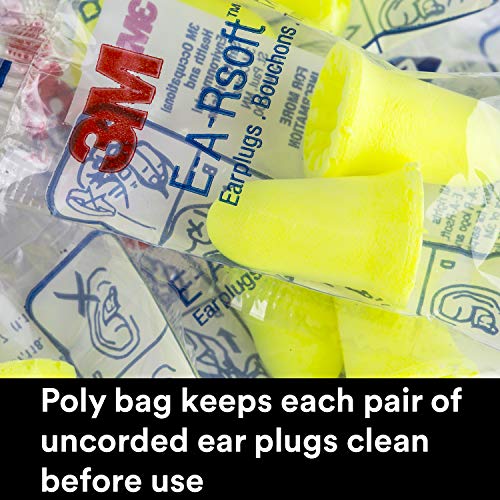 3M Ear Plugs, 200 Pairs/Field, E-A-Rsoft FX 312-1261, Uncorded, Disposable, Foam, NRR 33, Drilling, Grinding, Machining, Sawing, Sanding, Welding, 1 Pair/Poly Bag