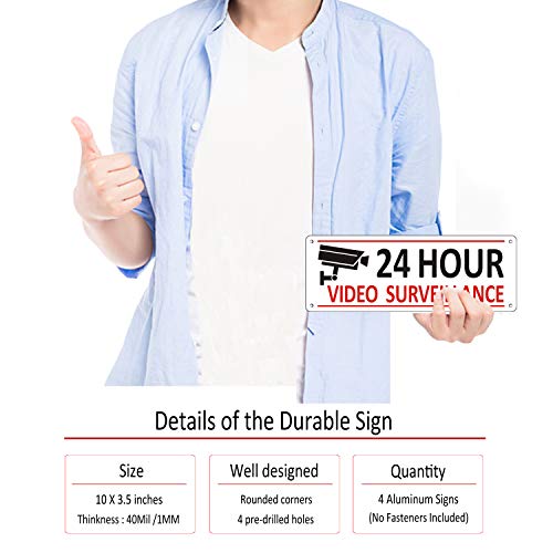 (4 Pack) Video Surveillance Signal, Residence Safety Indicators for Home Enterprise, 10 x 3.5 inches Aluminum Warning Indicators Out of doors Fence, 24 Hour CCTV Signal for Yard, Reflective Steel Digicam Signal Rust Free