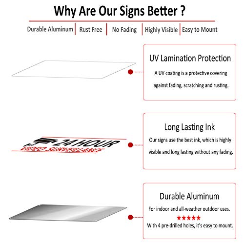 【DURABLE ALUMINUM】This Video Surveillance signal is manufactured from 100% rust free heavy sturdy aluminum, which is waterproof and weatherproof. So these Video Surveillance indicators will final for a few years of all indoor and out of doors makes use of.