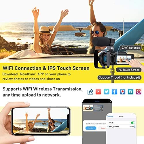 🎥【With IR Night time Imaginative and prescient & WiFi Perform】The 4K digicam comes with IR night time imaginative and prescient operate that let you take clear black and white photographs or movies even at nighttime. The 4k camcorder might be managed remotely to shoot, browse or view photographs & movies and immediately share your photographs and movies on social media just by obtain “RoadCam” APP in your telephone (Android and iOS system) or pill.