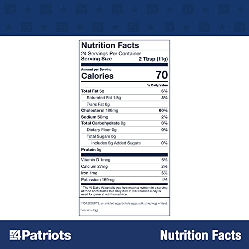 Your 4Patriots Scrambled Egg Equipment delivers 96 servings of scrumptious freeze-dried eggs designed to final 10 years. Dehydrated for long-lasting shelf life.