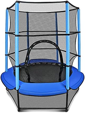 55″ Children Trampoline with Security Enclosure Internet and Pad, Mini Backyard Outside Trampoline Indoor and Outside Train Health Gear for Children 3+ Age (Blue)