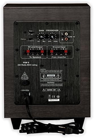 Acoustic Audio PSW-8 Specialty Sequence residence theater powered subwoofer, 300 watts peak energy, frequency response is 26Hz-250Hz, effectivity is 97dB, 8ohm impedance