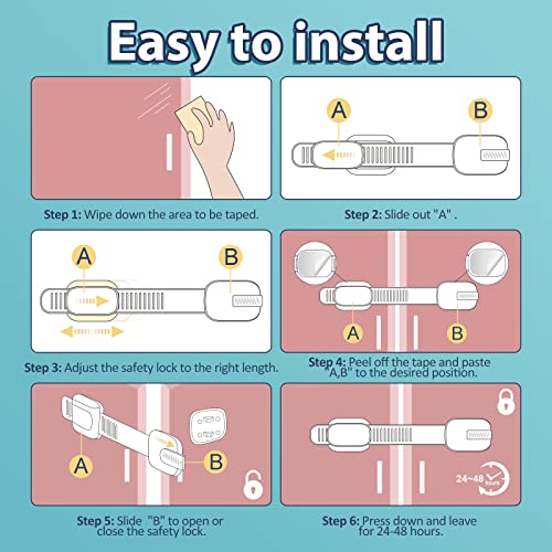 Adjustable Strap Latches for Drawers, Clear Multi-Use Adhesive Straps Locks Child Proofing Cupboard Lock – Baby Proof Security Locks for Cabinet,Oven,Fridge,Door,Window, No Drilling (10pcs)