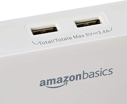 AmazonBasics 6 Outlet, Wall Mount Surge Protector, Energy Strip, 2 USB ports 3.4A, 1080 Joules