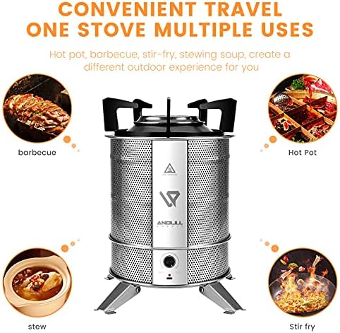 Anbull Biomass Range Wooden Range Tenting Range – Light-weight Wooden Burning Range. Compact Camp Range Equipment for Backpacking, Tenting, Survival. Burns Twigs – Stainless Metal