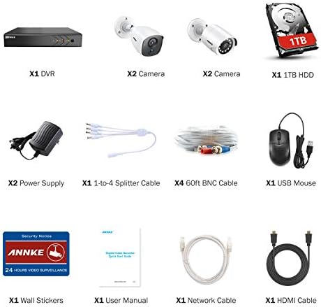 1×8CH H.265+ 5MP lite DVR2×1080P PIR Safety Cameras& 2X 1080p TVI Cameras4×60 BNC+DC CCTV cables for cameras (This isn’t Wi-fi Digicam System, however we provide 60FT CABLE for every digital camera.)3×Energy Adapters2×1 to 2 Energy Splitter Cables4×Mounting Screw Bags1×USB Mouse1×5.9 ft/1.8 m HDMI Cable1×3.2 ft/1 m Ethernet Cable1×Person Manual1×Wall Sticker1×1TB Safety Grade Laborious Drive was pre-installed contained in the DVR