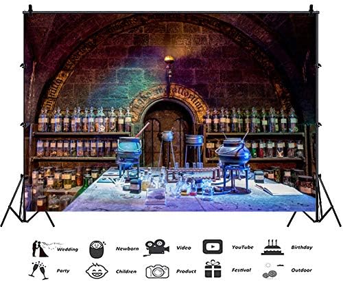 AOFOTO 7x5ft Chemistry Laboratory Background Scary Halloween Get together Decorations Spooky Witch’s Room Glass Bottles Agentia Black Magic Lab Backdrop Hallowmas Picture Studio Props Vinyl