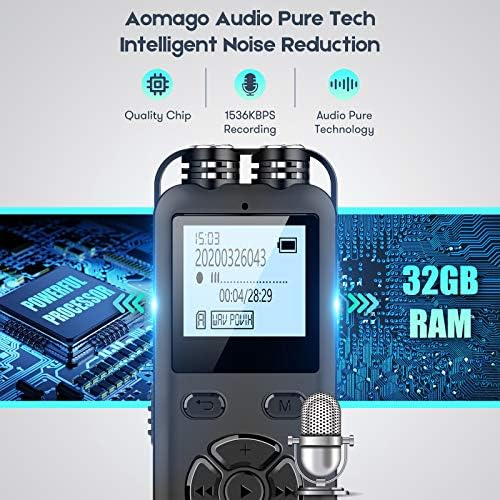 Aomago 32GB Digital Voice Recorder for Lectures Conferences – A36 Audio Recorder with Playback Help Exterior Microphone and Line in Recording 1536Kbps Recording Dictaphone