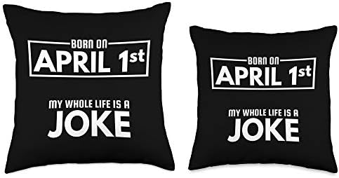 April Fools Day – Birthday Joke – DressedForDuty Born 1st My Life is A Joke-April Fools Birthday Throw Pillow, 18×18, Multicolor