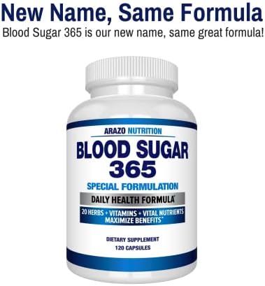 Arazo Vitamin Blood Sugar 365 Complement – 120 Natural Capsules – 60 Day Provide