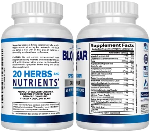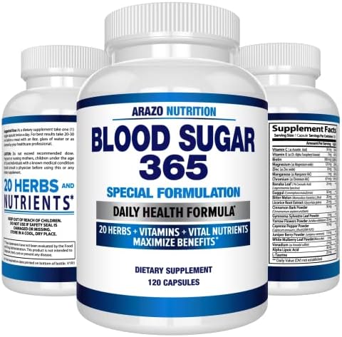 Blood Sugar 365 Complement – 20 Herbs & Multivitamins for Wholesome Sugar Ranges with Alpha Lipoic Acid & Cinnamon – 120 Capsules – Arazo Vitamin