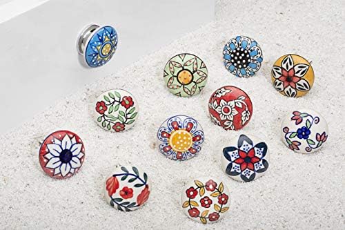 Set of 12 Multi Colour Ceramic cupboard knobs with becoming {hardware}