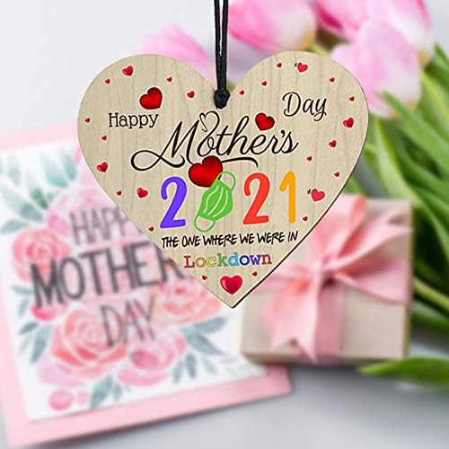 Assletes 2021 Mom’s Day Picket Coronary heart Present, Love Mother Vibrant Decor Ornaments Wooden Plaque Quarantine Memorial Dwelling DIY Souvenir Pendant for Mom 4″x4″ (A1)