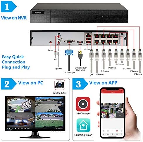 【Secure Wiring and Digital Sign& Plug and Play】 – In contrast to a CCTV DVR system, movies from the IP digital camera system won’t lose high quality or be destroyed by defective cables. A robust digital sign maintains a 5MP high-definition picture by way of 330ft CAT6 or 270ft CAT5 Ethernet cables. Customers won’t ever have to fret about sign degradation which normally occur on coaxial cable of DVR and analog cameras even inside 100ft.