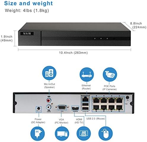【Superior H.265 Video Compression, Extremely-long Recording】H.265 is extra environment friendly than H.264+ and H.264. It will probably maximize cupboard space. It additionally takes up much less bandwidth and permits easy distant viewing. This can SAVE you a whole lot of NETWORK STRESS and MONEY on storage. With the pre-installed 2TB HD, you’ll be able to document 24/7, defend your property and household.