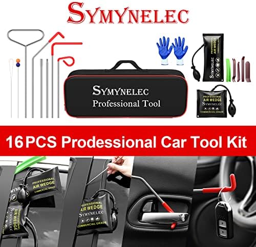 Automotive Software Package 16PCS, SYMYNELEC Skilled Important Automotive Software Package with Lengthy Reacher, Air Wedge Pump, Non Marring Wedge, Gloves