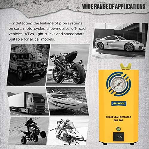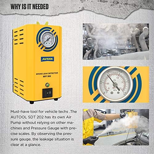 Should-have device for car techs .TheAUTOOL SDT 202 has its personal AirPump with out counting on different ma-chines and Stress Gauge with pre-cise scales.By observing the pres-sure gauge, the leakage state of affairs isclear at a look.