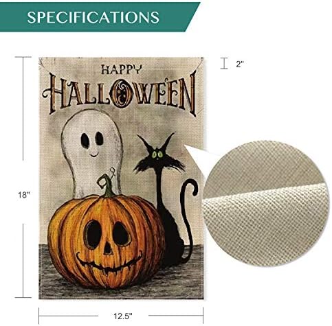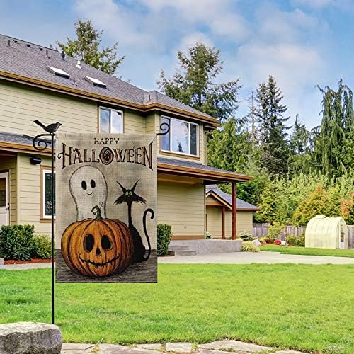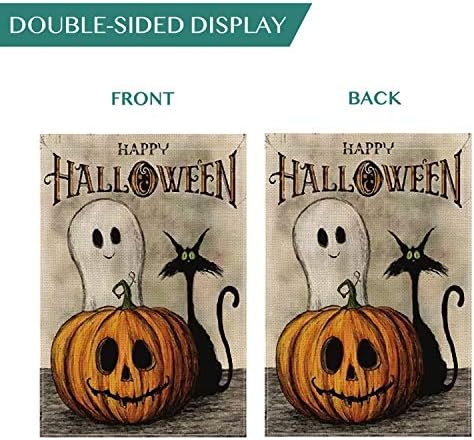 AVOIN Glad Halloween Backyard Flag Vertical Double Sized, Spooky Ghost Pumpkin Jack O’Lantern Black Cat Yard Out of doors Ornament 12.5 x 18 Inch
