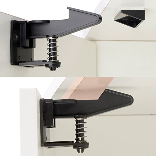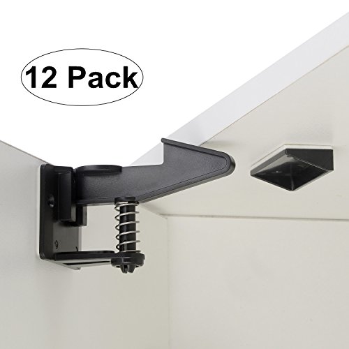 Baby Security Cupboard Locks Latches – 12 Pack,Children Child Proofing Lock Baby Proof Drawer Locks – Cabinet Hidden Latch – Adhesive,Door Spring Lock – No Instruments,Drill (Black)