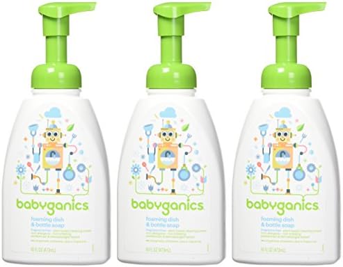 Babyganics Foaming Dish & Bottle Cleaning soap, Pump Bottle, Perfume Free, 16oz, 3 Pack, Packaging Might Differ