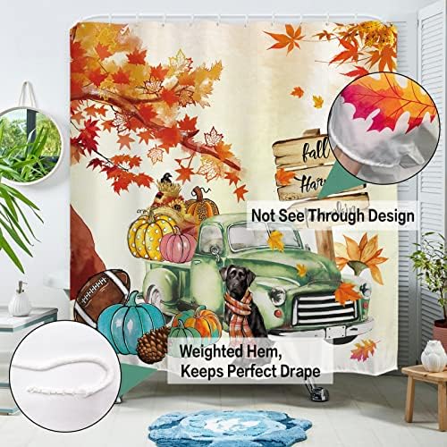 Baccessor Fall Tree Pumpkin Truck Bathe Curtain, Autumn Thanksgiving Maple Leaves Waterproof Cloth Lavatory Curtain Harvest Farmhouse Rustic Vacation Ornament 72 x 72 Inch with Hooks