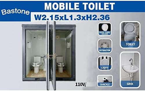 Arrange If it is a concrete flooring, please use twist-n-lock anchors on 4 corners of the transportable restroom, and use wire rope to attach the anchor and high nook of the transportable restroom. If it is a soil flooring, please use 20 inches – 28 inches floor nail on 4 corners and use wire rope to attach the anchor and high nook of the transportable restroom. Specification Situation: New Dimensions (ft): L4.3*W7*H7.7 1/2″ feminine inlet ports for warm & chilly water 3″ black water/waste exhaust versatile hose (simply slide your 3″ PVC pipe onto flex becoming for waste) 1″ PVC water outlet exhaust port (for sink water) Lowest pipe working temperature: 14℉ (if iced, please use 122℉ water to soften) Bowl Form: elongated Mount kind: wall mounted Flush quantity: 1.6 gpf Steel body coloration: RAL7015 Wall panel coloration: GZ101 Function Mannequin Quantity: 110V Public Restroom with Double Shut Stool Materials: Excessive-Temperature Resistant Paint Flooring Materials: Inflexible PVC board Wall Materials: Inside UV board, with a layer of plywood on the skin Door: Safety Door Package deal Measurement L*W*H (inch): 85*51*95 Weight (lb): 1339 Please have a forklift or equal prepared for unloading