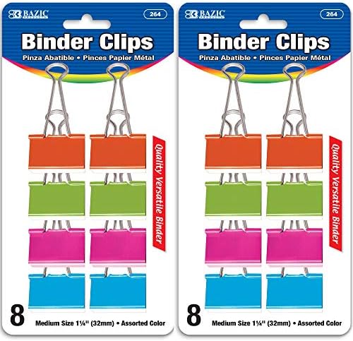 BAZIC Medium 1 1/4″ (32mm) Assorted Coloration Metallic Binder Clip, Fold Again Paper Clamps Clips for Workplace Faculty Provides, Residence Kitchen Storage Software (8/Pack), 2-Pack