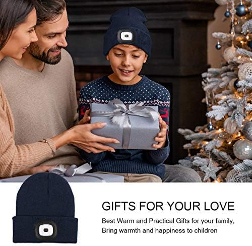 Beanie Hat with Gentle for Children, USB Rechargeable Palms Free LED Headlamp Cap Winter Knitted Evening Lighted Hat Flashlight