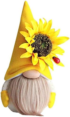 【High quality Workmanship】These plush gnome dolls are fabricated from high-quality wool felt and tender plush, full of polyester stuffing. Adorned with yellow sunflower flowers. The weighted backside lets it stand alone secure.