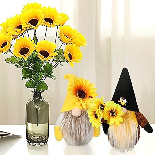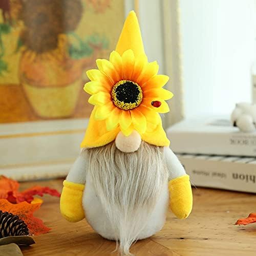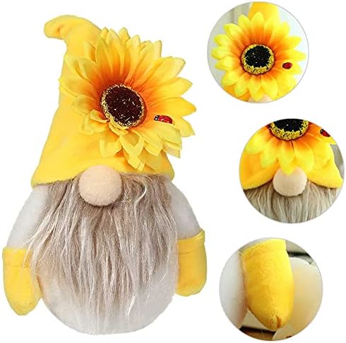 【High quality Workmanship】These plush gnome dolls are fabricated from high-quality wool felt and tender plush, full of polyester stuffing. Adorned with yellow sunflower flowers. The weighted backside lets it stand alone secure.