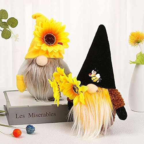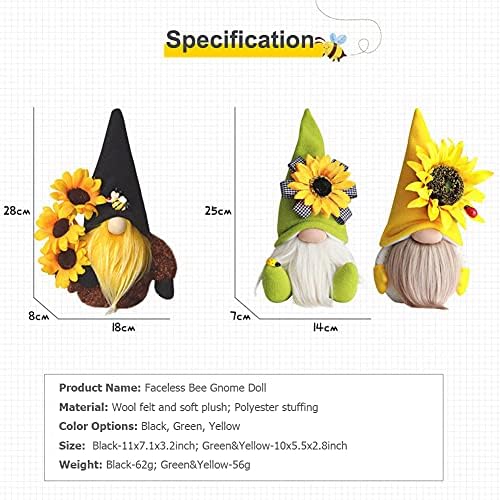 Bee Gnome Spring Sunflower Doll Decor, Plush Bumble Bee Gnomes Ornaments, Handmade Faceless Cute Bee Elf Doll Indoor Desktop Gnomes Ornaments House Pageant Decor (Yellow)