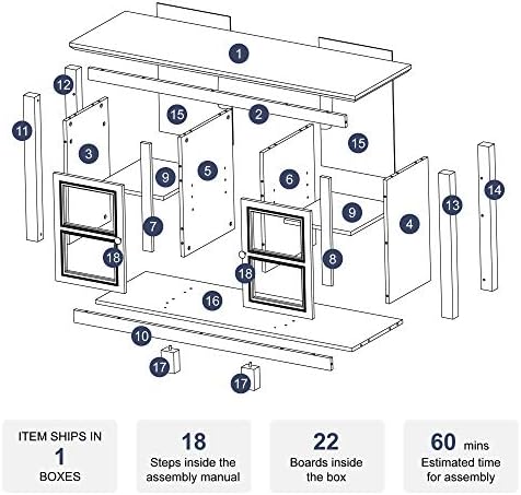 The TV Stand ships flat to you and two adults are really useful to assemble. General Dimensions: 58″(L) x 15.75″(W) x 24.5″(H)