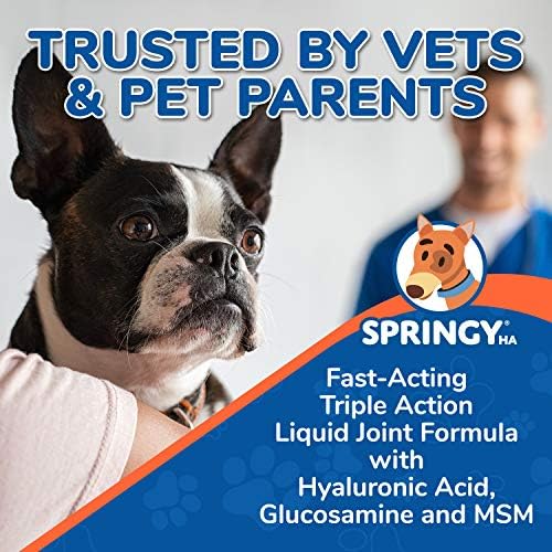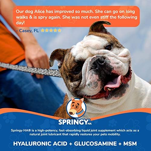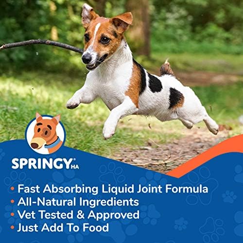 ALL NATURAL MADE IN THE USA: In the case of prime quality elements – nothing tops SPRINGY. The HA in our joint well being system is premium high quality and boasts a excessive molecular density. As a result of SPRINGY is an all-natural formulation, its pet protected supplying you with peace of thoughts in realizing you received’t be buying and selling your furry pals precise well being to keep up their joint operate.