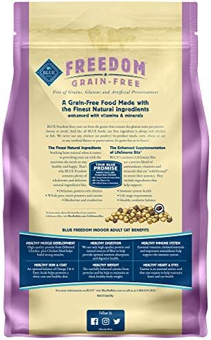GRAIN FREE CAT FOOD: BLUE Freedom grain free indoor cat meals is specifically formulated to assist meet the distinctive wants of indoor cats together with pure fiber sources to advertise wholesome digestion and thoroughly balanced energy to assist keep wholesome physique weight.