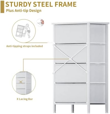 BOLUO White Dresser for Bed room 4 Drawer Dressers & Chests of Drawers Small Skinny Cloth Storage Tower for Closet Nursery Child Youngsters and Grownup Trendy