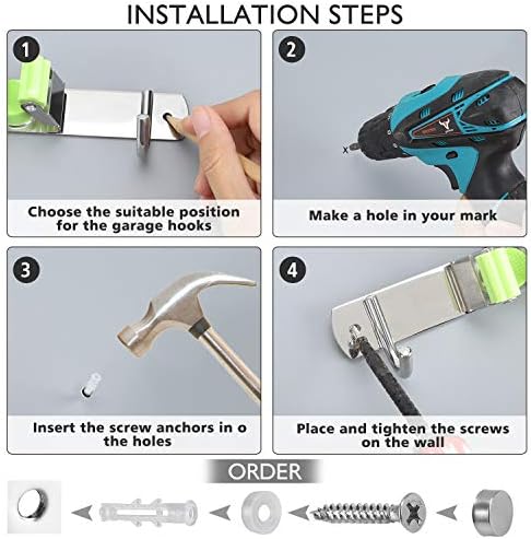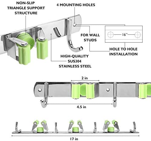 Broom Mop Hook Holder Wall Mount Set up-16inch,2020 Organizer 304 Stainless Metal 3 Racks 4Hooksfor House Lavatory Kitchen Storage Workplace Closet Backyard Laundry Storage,Hook (Inexperienced, 1)