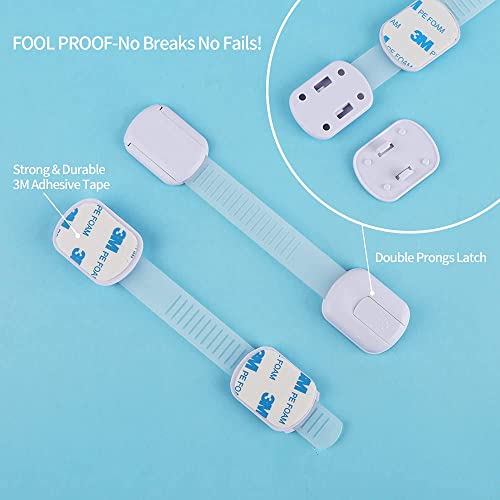 Candy Choose n Click on Pack of 10 Baby Security Strap Locks White Childproof Cupboard Latches Adjustable Child Locks,Bathroom Seat,Trash Can,and Fridge