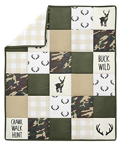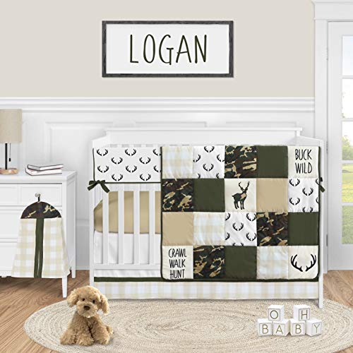 Candy Jojo Designs Woodland Camo Deer Child Boy Nursery Crib Bedding Set – 5 Items – Inexperienced Beige and Black Rustic Camouflage Buffalo Plaid Test