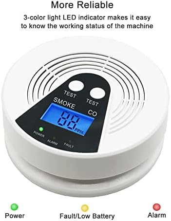 Carbon Monoxide Alarm, Smoke and Carbon Monoxide Detector Alarm Combo, Battery-Operated Twin Sensor CO Smoke Alarm, Compliant with UL 217 & UL 2034 Requirements