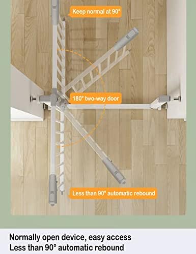 180 levels two-way door opening, simple to enter and exit, the door Angle is lower than 90 levels will robotically rebound to shut the door, eliminating the tedious steps of handbook closing and forestall hand clamping. Routinely maintain the door open when the door is 90 levels.it means very simple to auto shut by babe gate. No want stress child gate.