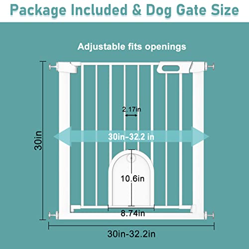 Child Gate with Cat Door Stroll By means of, Small Pet Gate for Pet Canine Doorway Stair – Strain Mounted Youngster Security Gate Stand 30inch Tall 30-32.2 Inch Vast